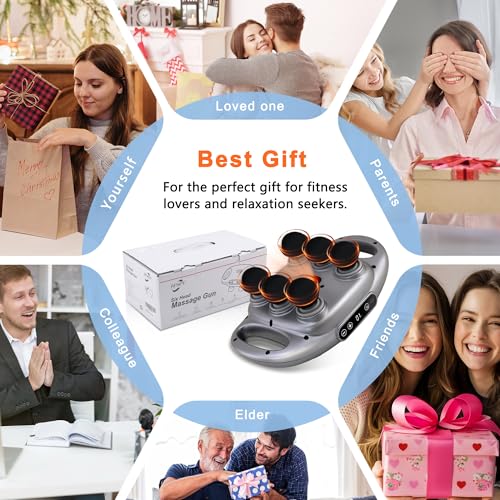【6-Head Massage Gun】Our muscle massage gun is designed with six heads, covering an area of 20000 square millimeters, which can fully relax each muscle group and meet the needs of muscle relaxation in many parts of the body, such as shoulders, back, thighs and calves.