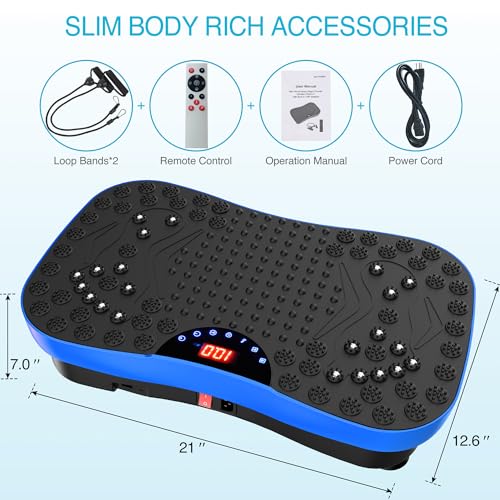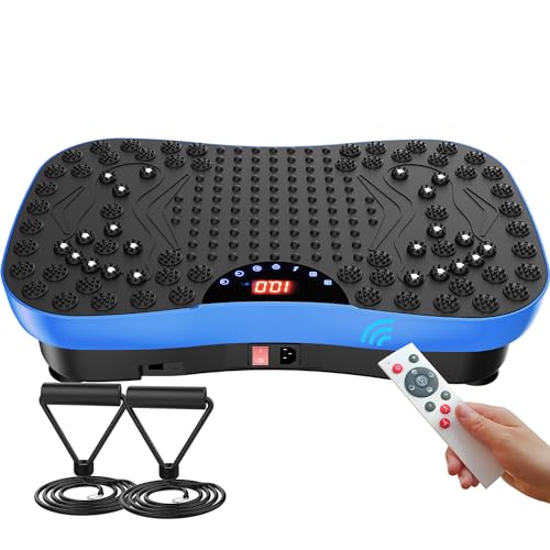 ✅RICH FUNCTIONAL & HIGH EFFICIENT& REMOTE CONTROL: Adjustable vibration speed (1 to 120), with 2 resistance workout bands, can exercise upper body and lower body at the same time. Offering variety of exercise modes, allow you to try different vibration exercises, With this workout machine, you can have your routine exercise done in only 10 minutes everyday. What you’ll get is a better shape and enhanced metabolism, increased bone mineral density, relieve and reduce stress levels.