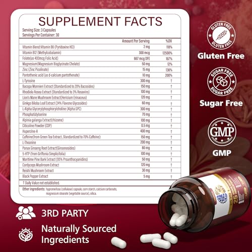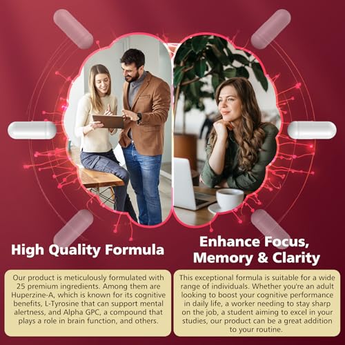 Memory and Focus Enhancement with Trusted Nootropics: Our formula combines proven ingredients like Alpha GPC, Huperzine-A, and L-Tyrosine to boost brain function, mental speed, and clarity. It’s tailored to support memory supplements for adults facing everyday challenges.