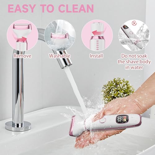 Waterproof & Wet/Dry Shaving: The 4 replaceable heads of Bikini Trimmer can be removed and rinsed with water, while any hair left inside the unit should be gently cleaned out with the included brush. You can also trim hair in multiple areas at once while in the shower, saving you time on busy workdays.