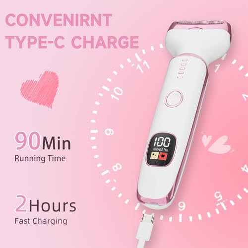Fast Charging and Portable: This women’s electric shaver is equipped with a USB cable for convenient charging outdoors or on vacation, which can be easily charged through a variety of devices such as power bank, computer, laptop and socket, the bikini trimmer runs up to 90 minutes on 2 hours charge. USB charging is easy to carry, making it ideal for travel and travel, Let’s enjoy extra portability with our razors.