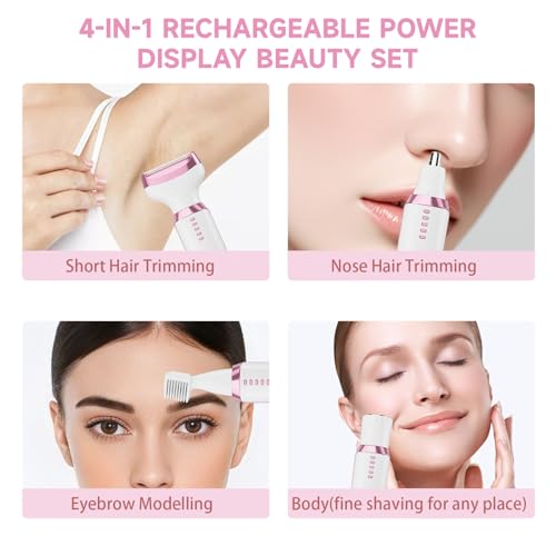 Versatile Shaving Heads: The Women’s Electric Shaver is equipped with four heads for shaving, eyebrow shaping, nose shaving, and hair trimming. It effectively removes unwanted hair from the face, arms, legs, body, bikini line, and underarms, ensuring you look confident and beautiful.