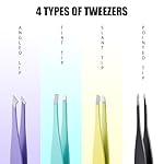 [Colorful Tweezers for Easy Identification] Vibrant pastel colors (purple, teal, yellow, black) differentiate each tweezer type so she instantly reaches the right one; brings extra fun and ease to her beauty routine.