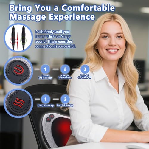 【Advanced Shiatsu Deep-Kneading Nodes】Experience the ultimate relief with our massage pillow’s 4 deep-kneading nodes, expertly designed to simulate professional Shiatsu massage techniques. Perfect for targeting muscle tension in your neck, shoulders, back, and more, giving you a soothing massage experience at home.