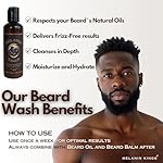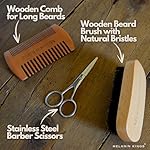 Elevate your appearance: Our beard kit for black men simplifies beard care and styling. Effortlessly shape with wooden combs and stainless steel scissors. Our beard wash, balm, and oil provide hydration, shine, and frizz control. Early use prevents itching and scales. Infused with natural oils that condition the skin and hair, promoting beard growth and preventing hair loss. Achieve a polished look with ease.”