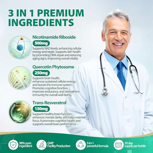 ADVANCED NAD+ FORMULA FOR ENERGY & VITALITY – Power your day with our liposomal blend of Nicotinamide Riboside, Resveratrol, and Quercetin. This advanced formula supports cellular energy, healthy aging, skin health, and physical endurance—unlocking the true potential of NAD+ for whole-body wellness.