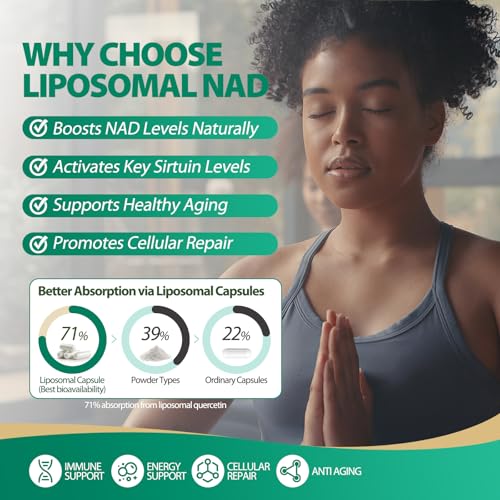 WHY CHOOSE LIPOSOME NAD: Each liposomal NAD supplements capsule utilizes liposomal nicotinamide riboside encapsulation, a cutting-edge technology that ensures that the active NAD+ ingredient enters directly into the cell, resulting in a bioavailability of up to 71%, three times that of a regular capsule. Maximizing Health Benefits.