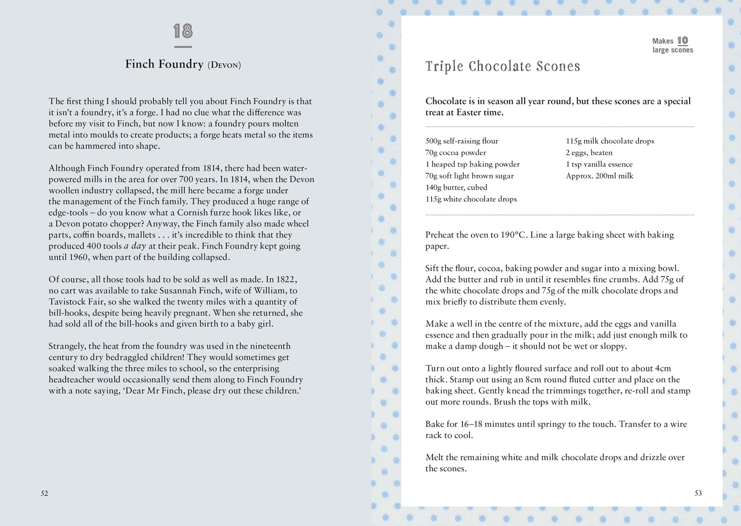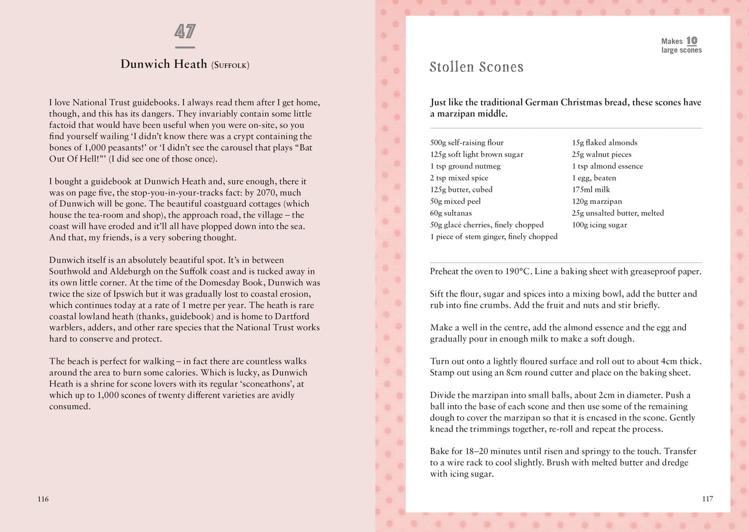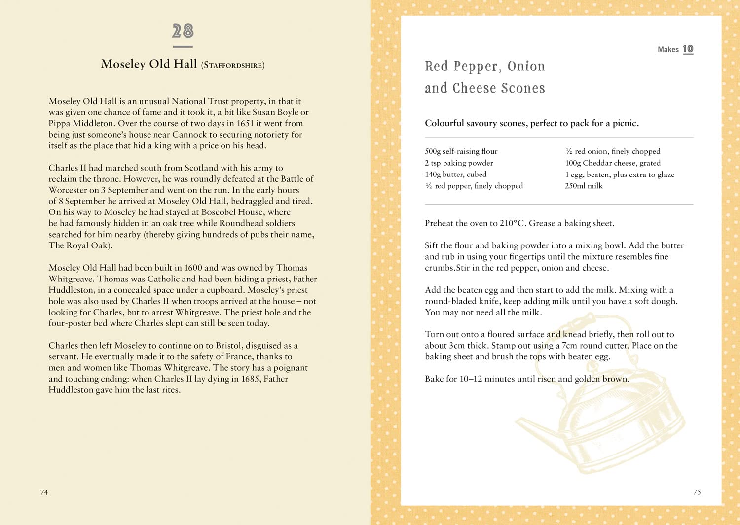 Scone obsessive Sarah Cleland has gathered 50 scone recipes from National Trust experts around the country, and has written a quirky guide to 50 National Trust places to delight and entertain you while you bake or eat those blissful treats. Eccentric owners, strange treasures, obscure facts—it’s all here. Whip up a Triple Chocolate Scone while you read about the mechanical elephants at Waddeston Manor, savor an Apple & Cinnamon Scone while you absorb the dramatic love life of Henry Cecil of Hanbury Hall, or marvel at a Ightham Mote’s Grade 1 listed dog kennel while you savor a Cheese, Spring Onion and Bacon Scone. 50 of the best scones in history and 50 of the best places to read about—you’ll never need to leave the kitchen again. Includes dual measures.
