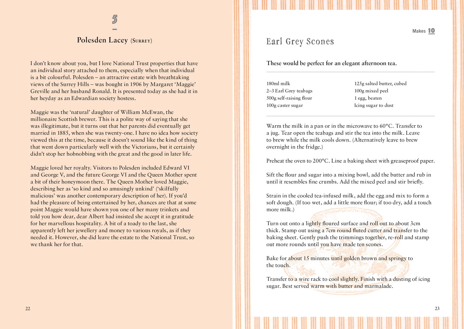 Customers enjoy the book’s recipes, which include many different flavors and come with stories about each one. They appreciate the interesting tidbits of information and find the book easy to follow, with one customer highlighting the engaging reviews of British National Trust properties. The book receives positive feedback for its value, with one noting it’s a valuable addition to any cook’s kitchen. While customers love scones recipes, they note that the measurements are not standard for US standards.