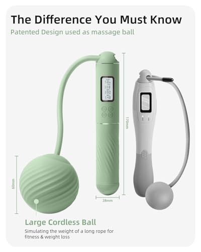 2.Patented 2In 1 Design for Stability: Our innovative design includes a large cordless ball that ensures the rope won’t easily fall. The external thread of the ball doubles as a massage ball, simulating the weight of a long rope for fitness and weight loss. Additionally, two removable counterweights enhance fat burning and accelerate sweating.